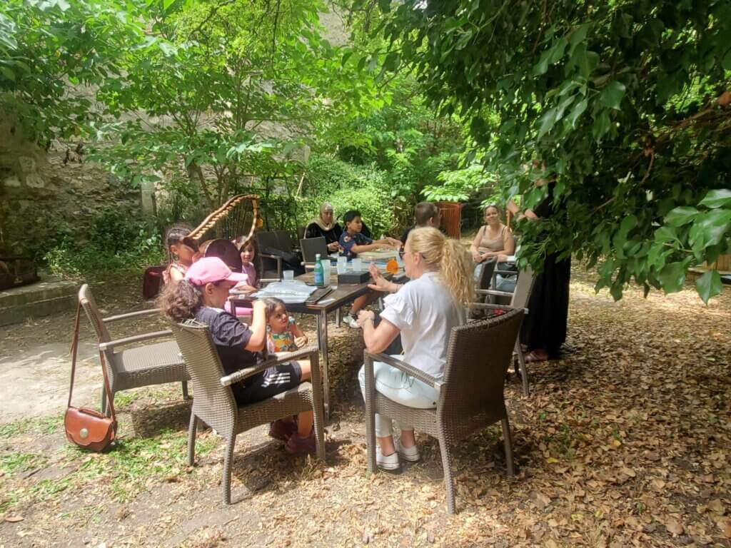 C’est entre le 12 juin et le 30 octobre que 5 ateliers se sont déroulés, alternativement sur le site de la Verrerie 🌱, à la maison de quartier de Griffeuille et au musée département Arles antique. Les thèmes explorés étaient l’art et la musique, l’alimentation, l’habitat, la vie quotidienne et le sport.